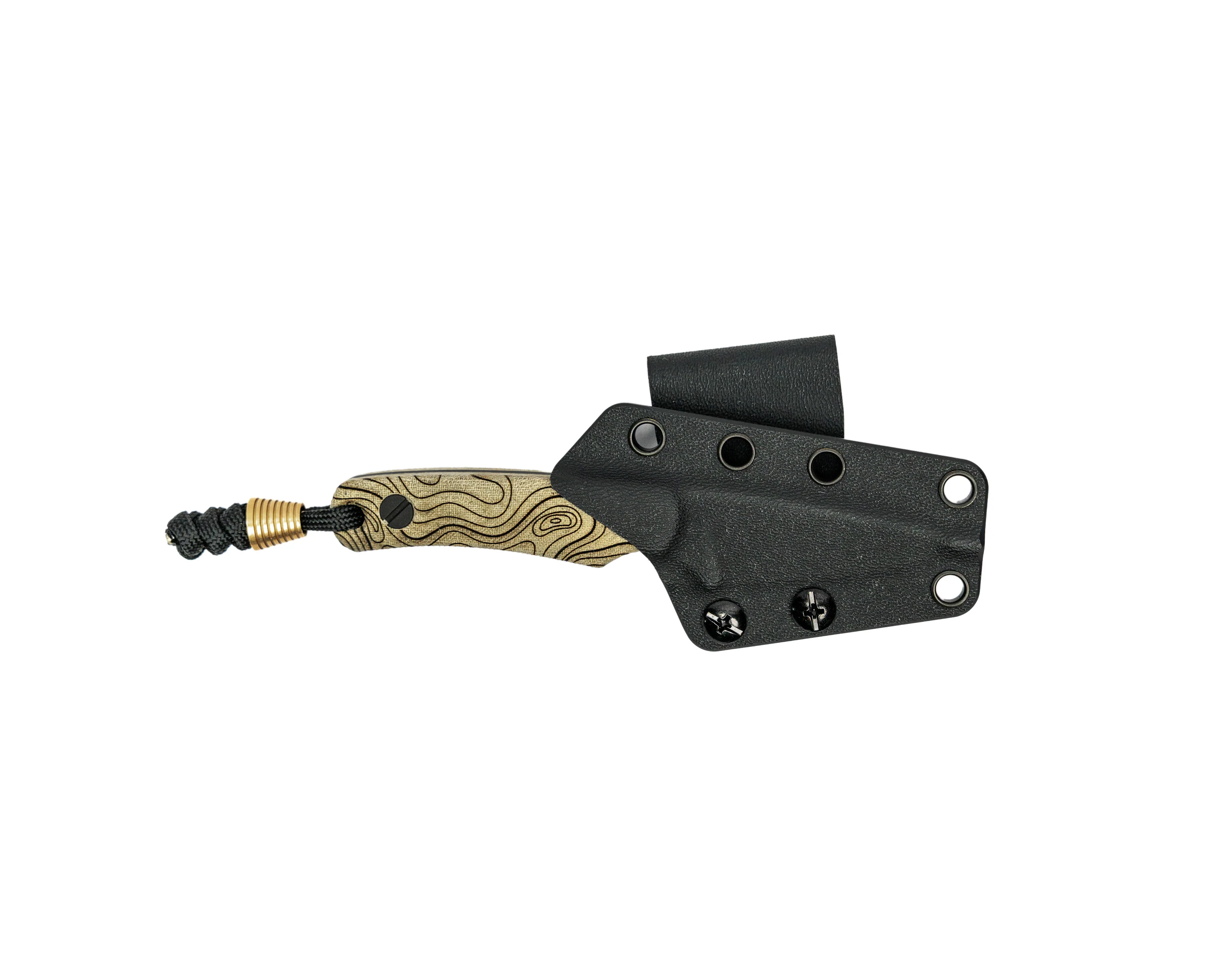Naturally, we had to give it the MMTW treatment. This exclusive version of the Little Lulu comes with a topographic pattern laser-engraved on green micarta scales, a black Cerakote blade, and a Kydex sheath.