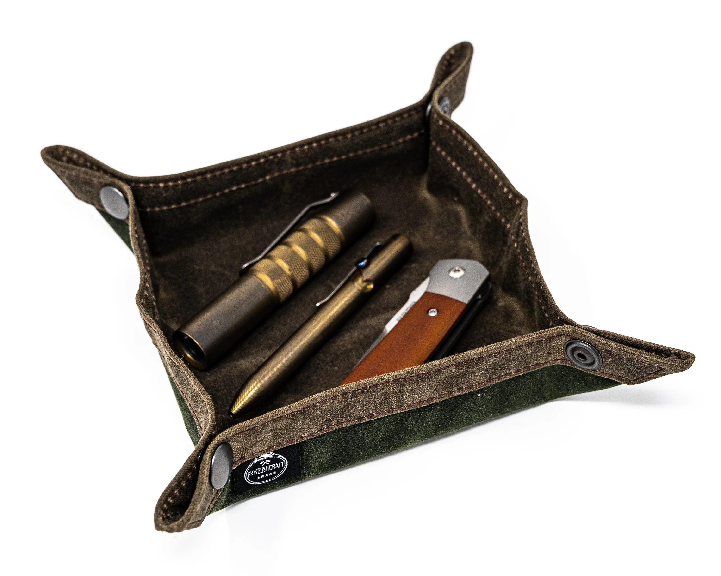 PNW Bushcraft Waxed Canvas Travel Tray – Foldable EDC Dump Tray